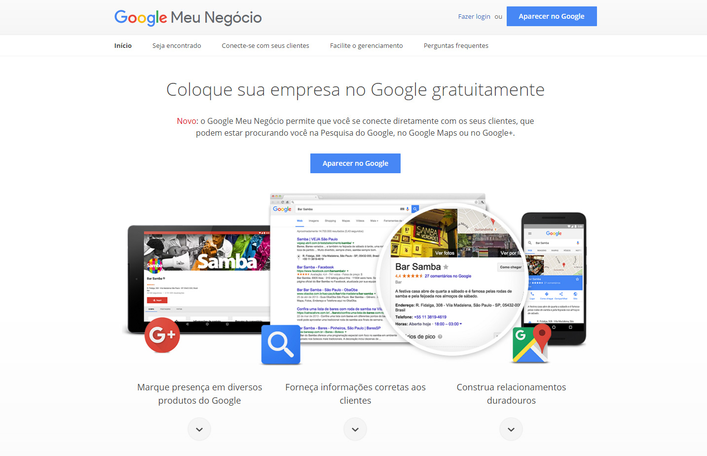 Acesse o site do Google Meu Negócio e depois clique no botão: (Aparecer no Google)