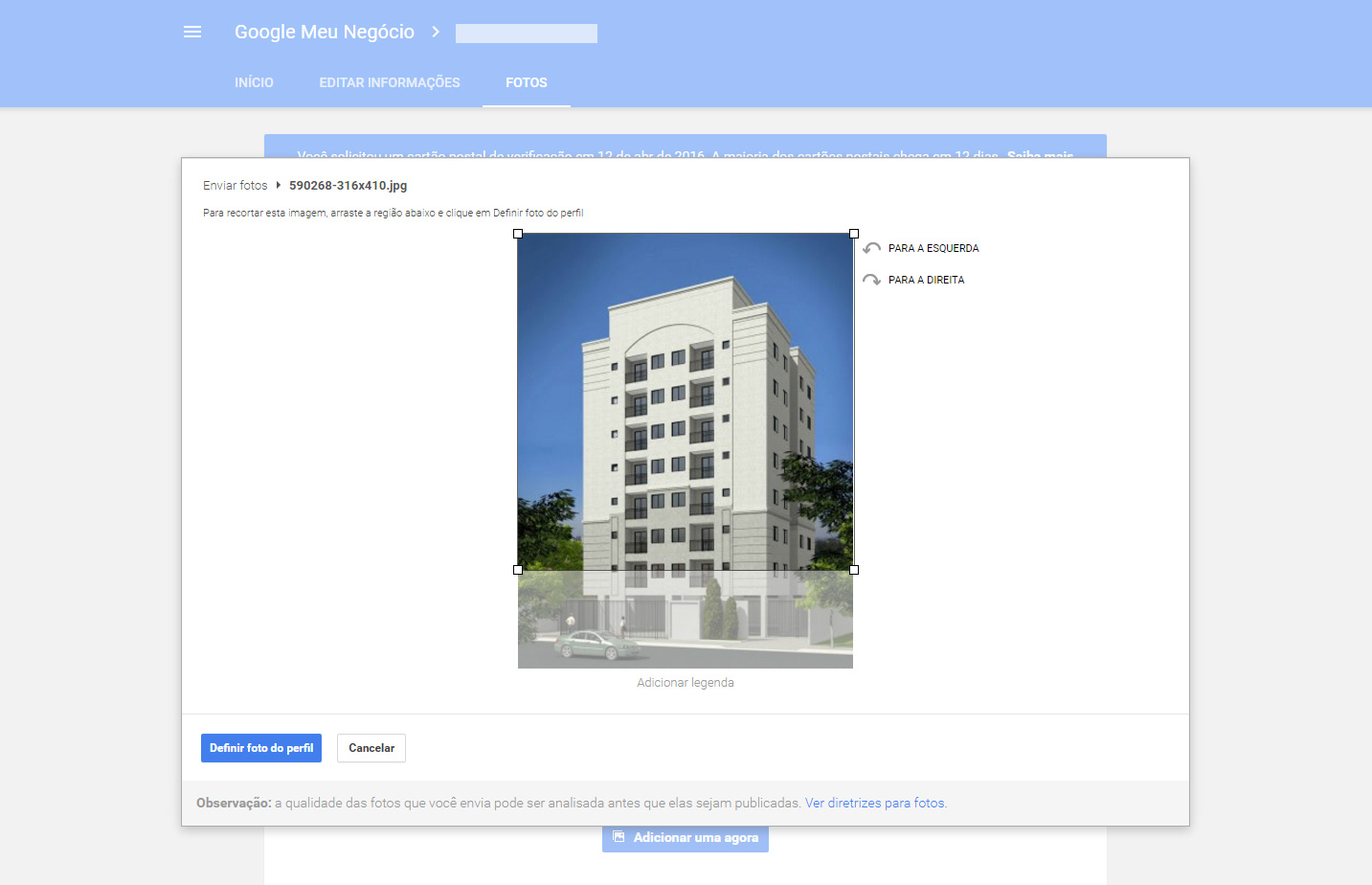 Após fazer o upload, recorte a imagem do jeito que melhor