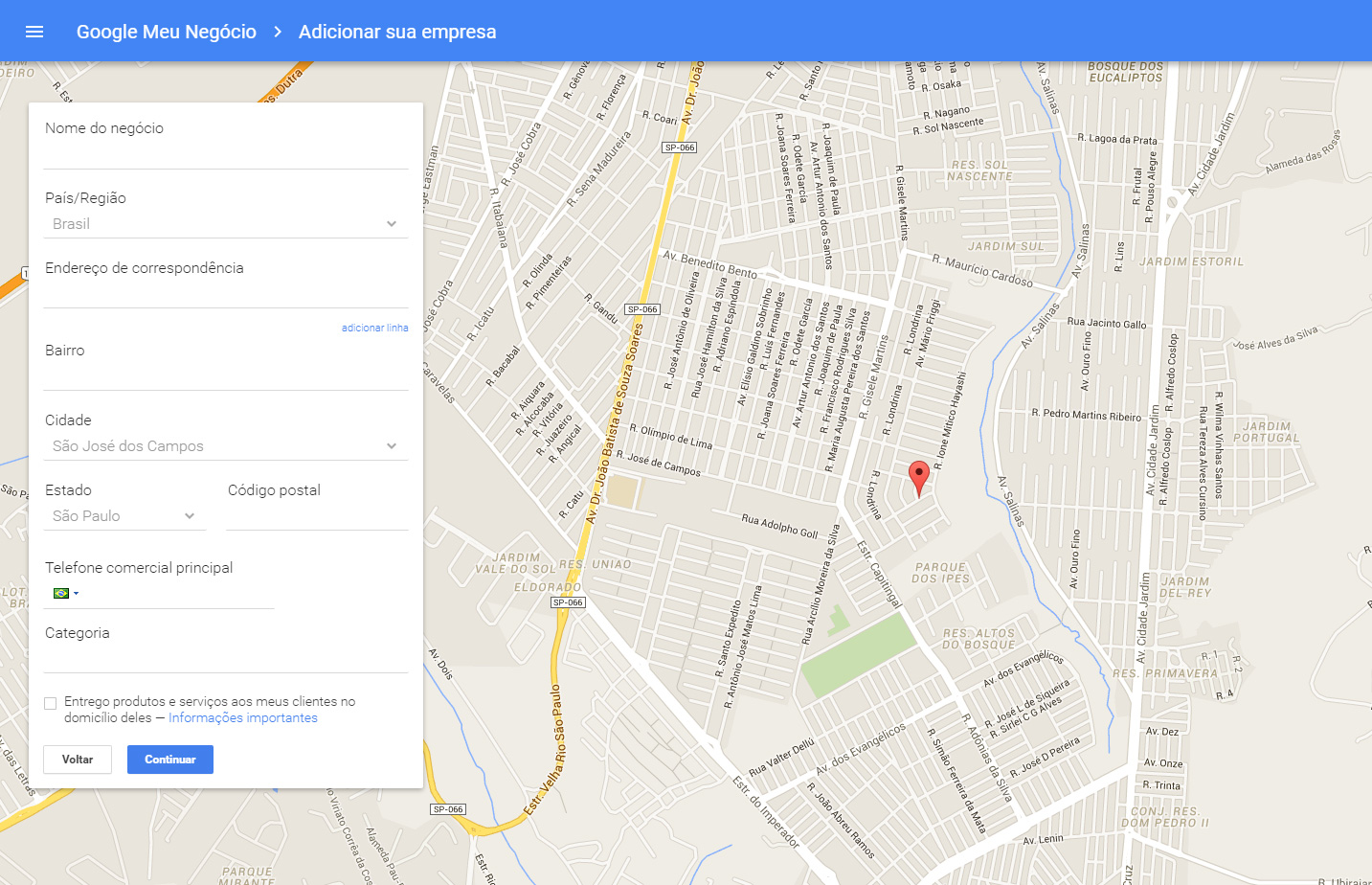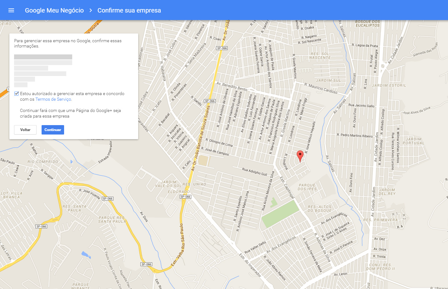 Digite o endereço onde deseja cadastrar seu negócio, em seguida clique em:
